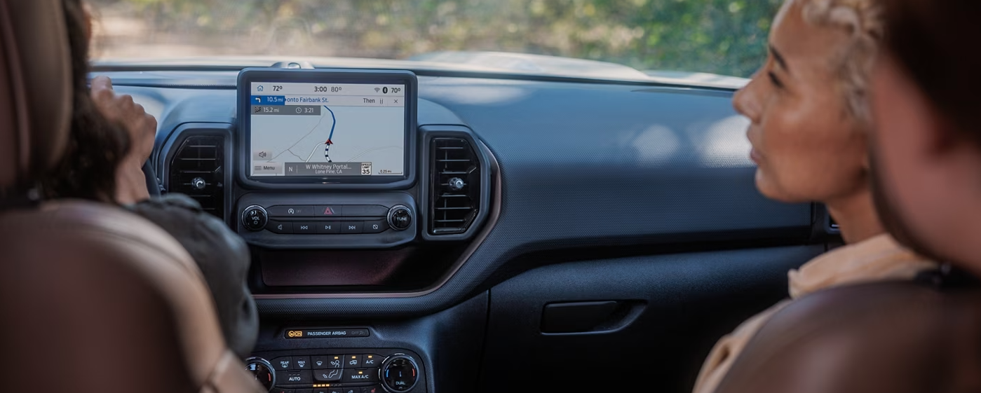 For however long you have the 2023 Ford Bronco Sport, you can continuously find entertainment and comfort in the cabin. The standard SYNC® 3 has an 8-inch LCD touchscreen with a flat interface to pick what songs would be the most fun to listen to. Also, the 105.7 cubic ft. of passenger volume without the moonroof helps your children have a wider interior to get comfortable in. If the back part of your vehicle is a bit cramped as is, push the standard second-row, 60/40 split-fold-flat seats back so they neatly bend down. The back part of your auto’s optional rubberized cargo floor mat will allow you to place any item you need reassured that this amenity guards the carpet.