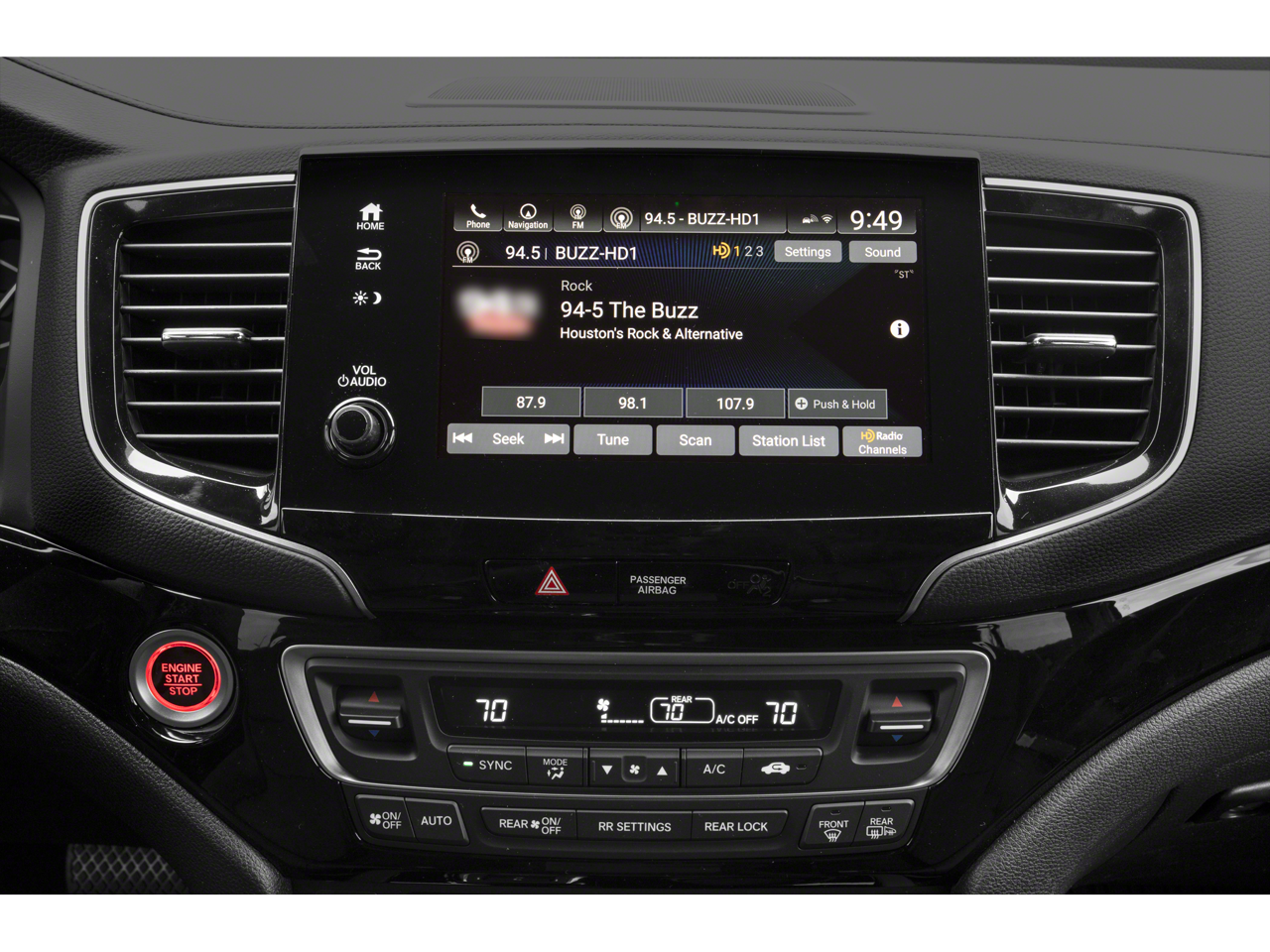- Radio: 540-Watt Premium Audio System w/10 Speakers -inc: subwoofer, 8" display audio w/high-resolution electrostatic touch-screen and customizable feature settings, Bluetooth® HandsFreeLink, Bluetooth® streaming audio, MP3/auxiliary input jack in center console, Radio Data System (RDS), Speed-Sensitive Volume Compensation (SVC), (3) 2.5-amp USB charging ports, HondaLink, Apple CarPlay integration, Android Auto integration, CabinControl remote compatibility, SMS text message function, SiriusXM, HD Radio, Wi-Fi hotspot capability, 2.5-amp USB smartphone/audio interface port in front console, Honda Satellite-Linked Navigation System w/voice recognition and Honda HD digital traffic, 115-volt power outlet, HondaLink subscription services and wireless phone charger SiriusXM services require a subscription after any trial period. Honda HD digital traffic service is only available in the United States, except Alaska. Honda wireless phone charger is compatible with both Qi and Powermat wireless charging standards. Check with your device's manufacturer for wireless capability.
