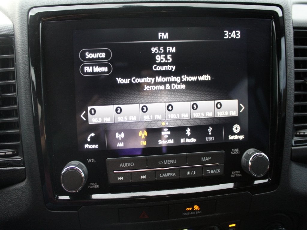 - Radio: SXM/AM/FM/AUX/USB Audio System w/6 Speakers -inc: 9.0" color touch-screen display, Apple CarPlay, Android Auto, Bluetooth® hands-free phone system and streaming (audio or text message), voice recognition for audio features, Siri Eyes Free, 1 USB-A and 1 USB-C front ports, steering wheel audio controls, Nissan door to door navigation, NissanConnect services and Wi-Fi hotspot