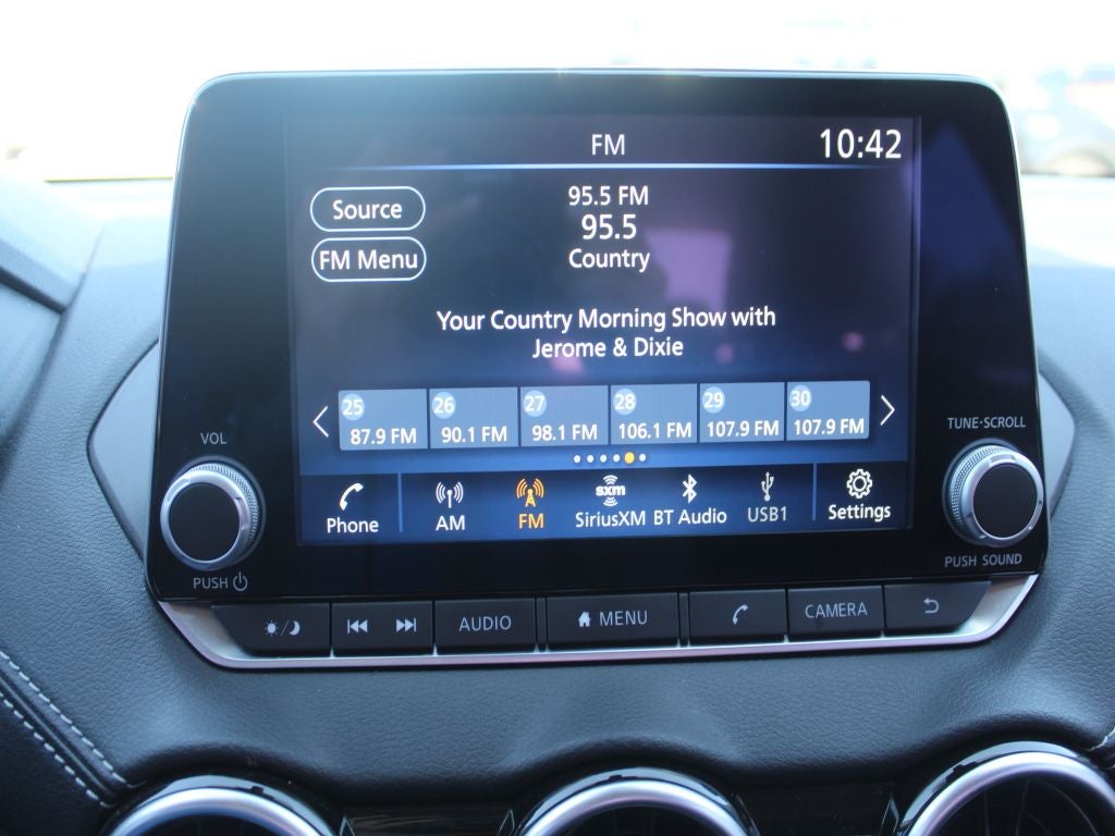 - Radio: AM/FM w/RDS/MP3/Aux-In -inc: 6 speakers plus 2 tweeters in A-pillar, 8" color display w/multi-touch control, streaming audio via Bluetooth®, Bluetooth® hands-free phone system, hands-free text messaging assistant, Siri eyes free, Google Assistant voice recognition w/Apple CarPlay and Android Auto, NissanConnect, (1) front USB connection port (type A), (1) additional front USB (type C) and (1) charge-only USB (type A) center console and SiriusXM radio w/advanced audio features